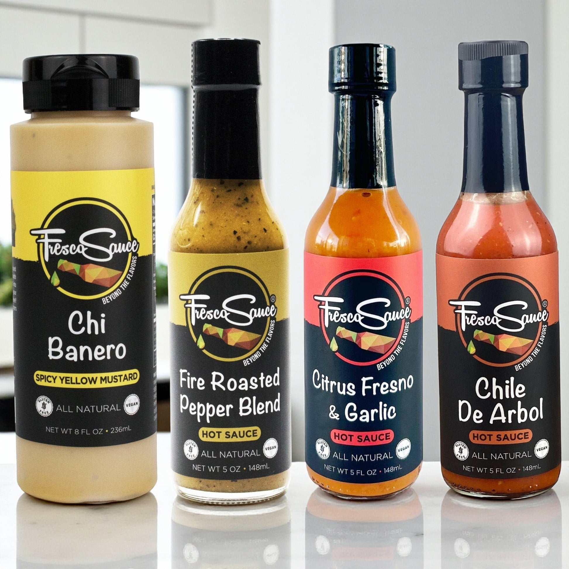 Turn up the flavor with our Gourmet 4-Pack Hot Sauce Collection, featuring four unique small-batch blends crafted for spice lovers who crave depth, balance, and bold taste in every drop.